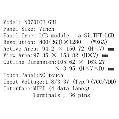 โมดูลจอ TFT-LCD ขนาด 7 นิ้วที่มีประสิทธิภาพสูง มีความละเอียด 800*1280 WXGA พร้อมเทคโนโลยี IPS สําหรับมุมชมที่กว้าง และการแสดงสีที่ดีเยี่ยม